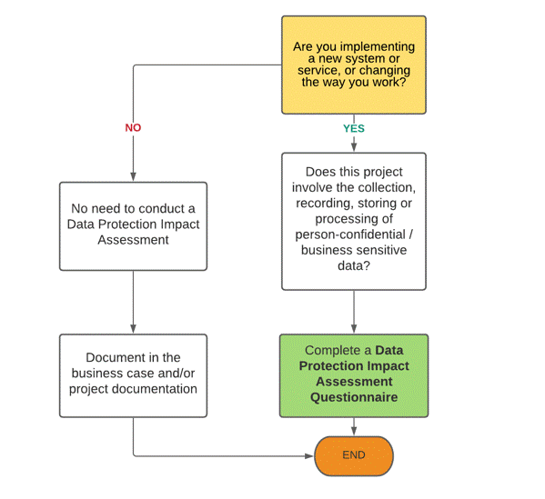 Not every new project, system or change in process will require a DPIA. The Information Commissioner’s Office (ICO) recommends that DPIAs are completed to comply with a change in law, introduction of new or intrusive technology or where person identifiable or sensitive information which was originally collected for a limited purpose is going to be collected for any new purpose(s) or reused in a new and unexpected way.